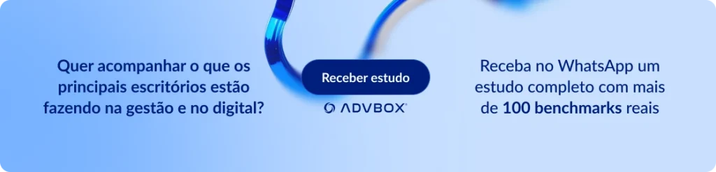 Ademais, você conhece Benchmark? Benchmark são dados de referência, usados para avaliar a eficiência e as estratégias de um sistema ou processo. Sendo assim, estamos disponibilizando através do WhatsApp um estudo completo com mais de 100 benchmarks reais para analisar e implementar no seu escritório.